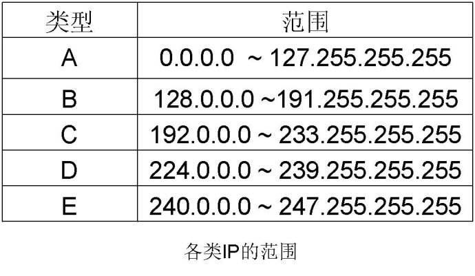 一個A類IP地址由1字節(jié)的網(wǎng)絡(luò)地址和3字節(jié)主機地址組成,網(wǎng)絡(luò)地址的最高位必須是“0”,地址范圍從1.0.0.0 到126.0.0.0。可用的A類網(wǎng)絡(luò)有126個,每個網(wǎng)絡(luò)能容納1億多個主機。